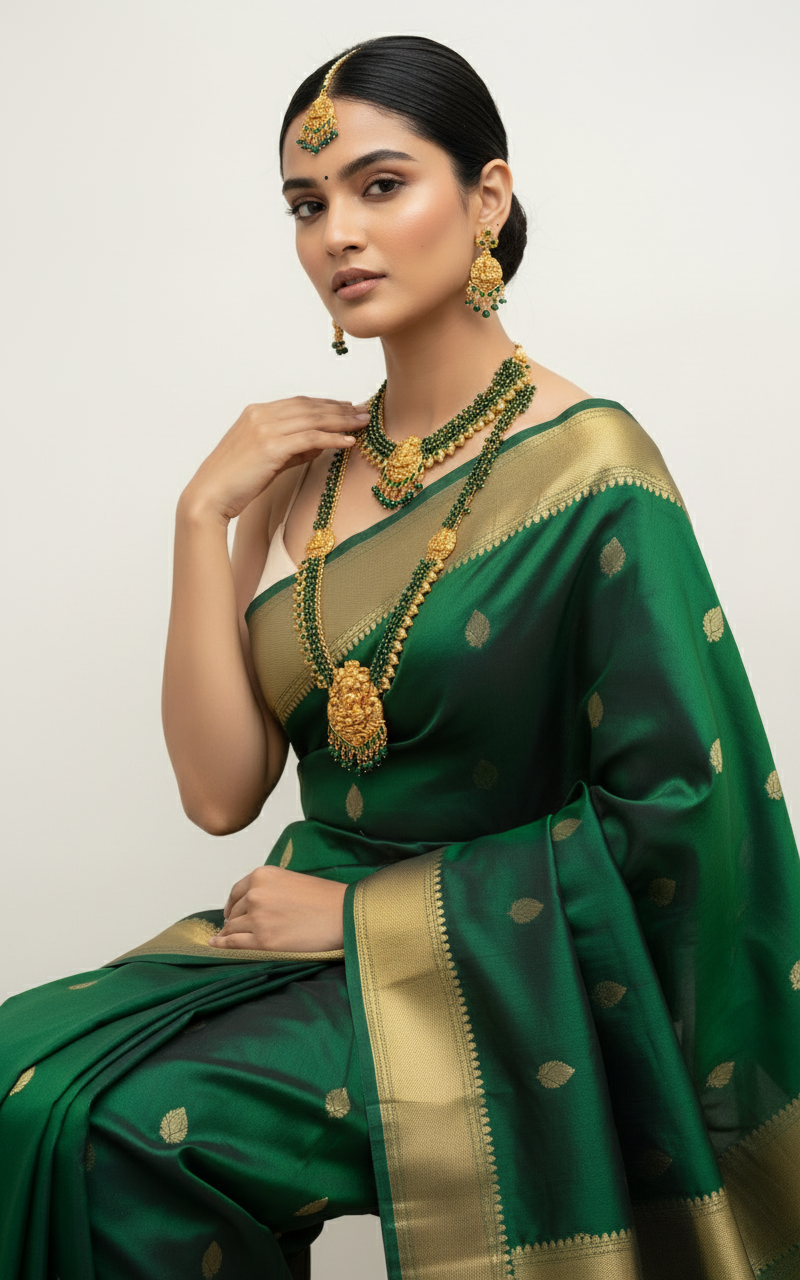 Green and Golden Dhan Laxmi Imitation Jewellery Set with Mang Tika