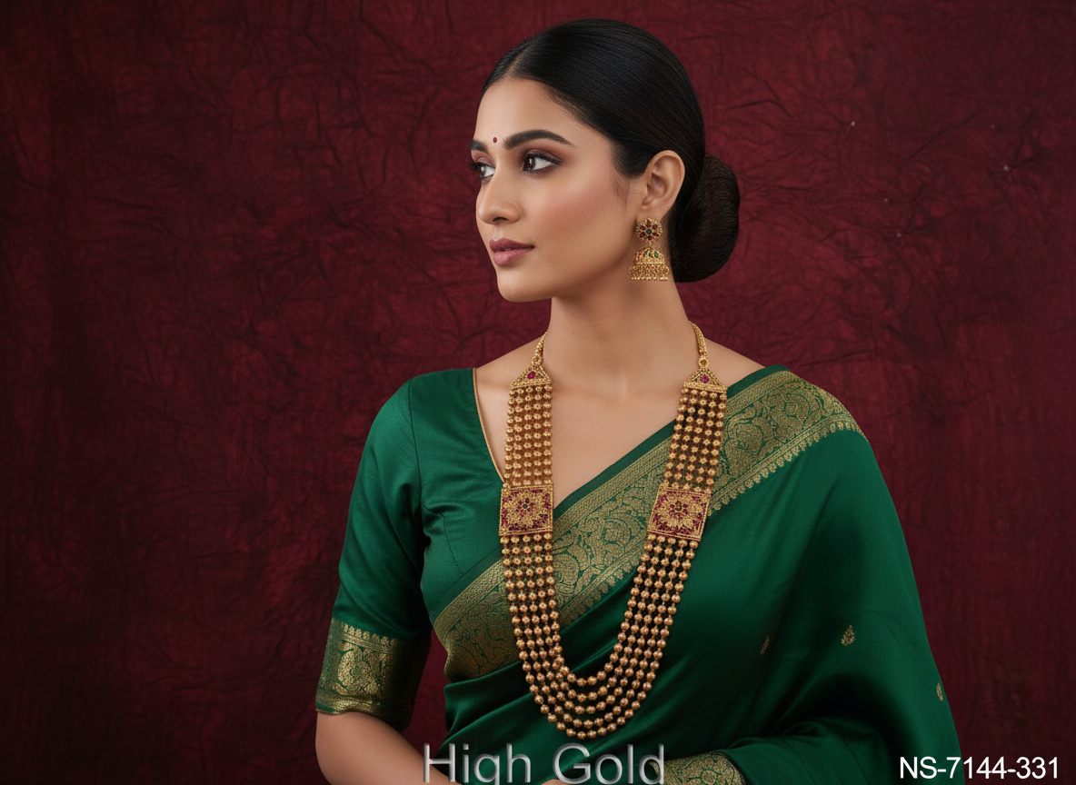 Traditional HIGH GOLD Polish 5 Layer Long Necklace Set